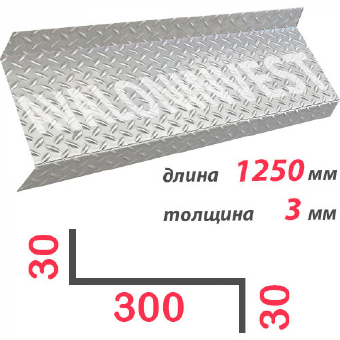 Купить Ступень Z-образная алюминиевая 1250x3 мм для лестниц внутренних и наружных, для дома, квартиры, офиса или магазина вы можете в нашем интернет магазине с доставкой курьерской службой или самовывозом с нашего склада. У нас вы можете приобрести Ступень Z-образная алюминиевая 1250x3 мм из прочного рифленого листа и качественного материала. Рифленый лист идеально подходит для ступеней, его поверхность не скользит а дополнительные изгибы и ребра жесткости создают мощный и надежный каркас лестницы. Ступень Z-образная алюминиевая 1250x3 мм подходит для монтажа на бетонных, деревянных, а так же на стальных конструкциях в качестве ступеней. Ступень Z-образная алюминиевая 1250x3 мм продается поштучно, изготовлен из рифленого листа. Основные свойства: Ширина: 300 мм Высота загибов: 25-35 мм Длина ступени: 600-1500 мм.